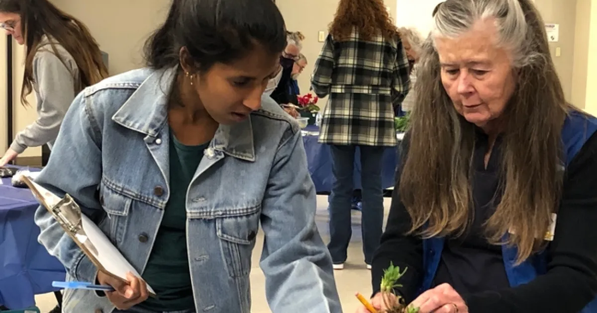 A Master Gardener discusses plant propagation with a trainee during the 2022 training program.