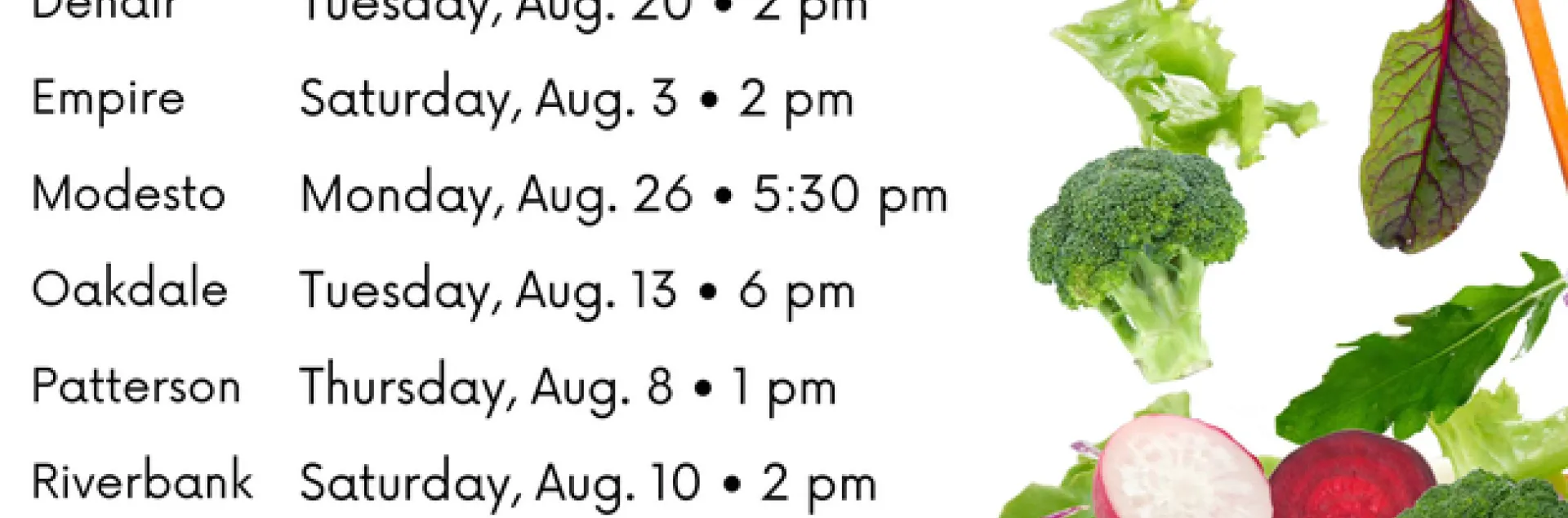 To help gardeners start planning their gardens for September and October, the Stanislaus County UC Master Gardeners will be giving talks at county libraries in August on how to Grow a Salad Bar. Topics covered will include what vegetables are best to grow during the fall and winter months, when and how to start from seed, caring for and transplanting the growing plants, when they can be harvested, along with how to identify and manage some common pests and diseases.