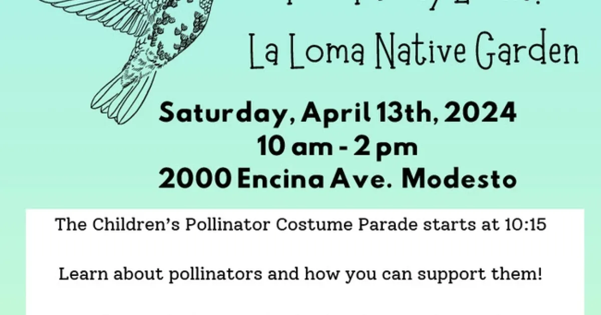 Put on your rain gear and join us this Saturday, Saturday, April 13th 2024 from 10am – 2pm at the Pollinator Festival. at the La Loma Pollinator Garden on 2000 Encina Avenue in Modesto.