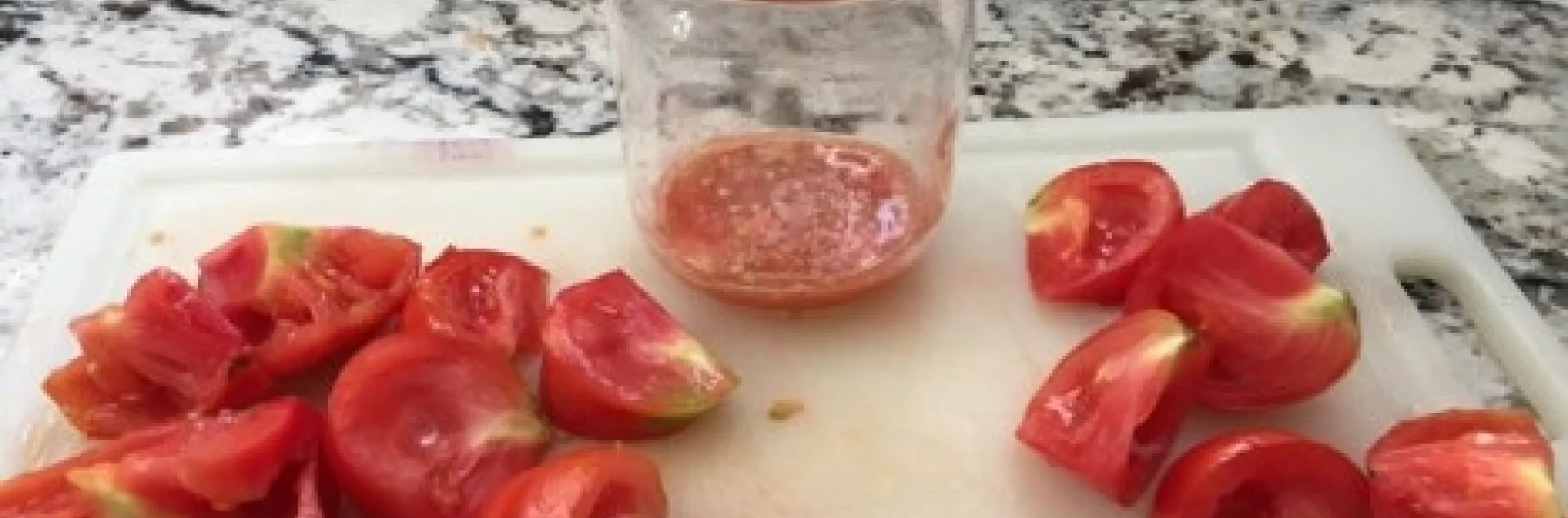 Step 2: Cut tomato, scoop out seeds & put into jar.