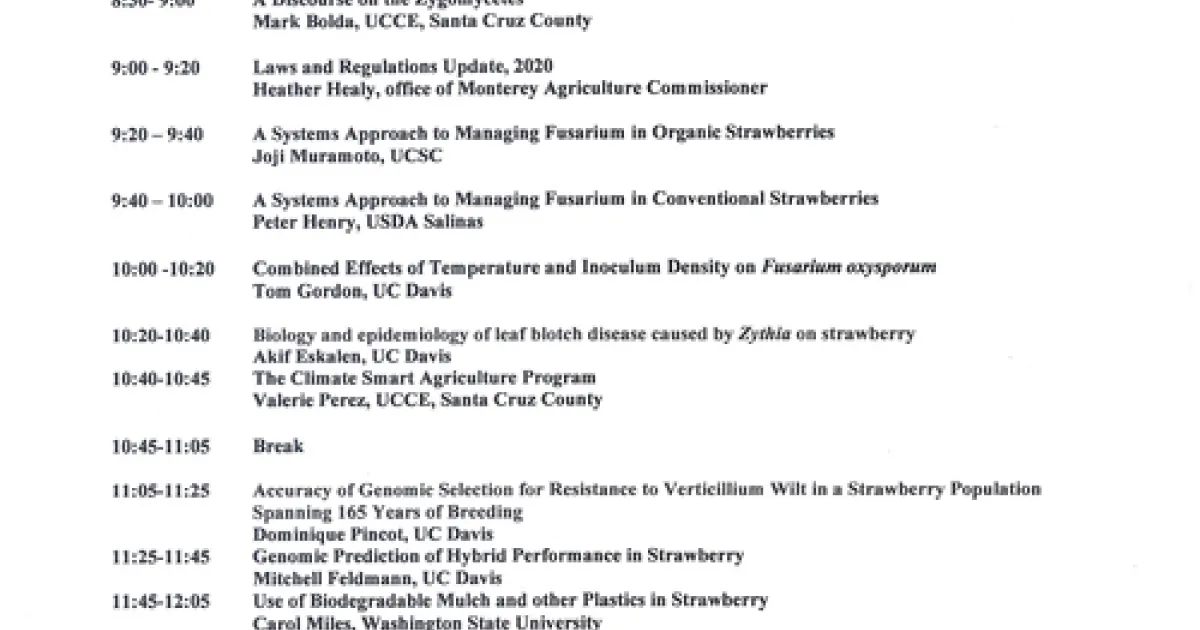 9:40 – 10:00 A Systems Approach to Managing Fusarium in Conventional Strawberries