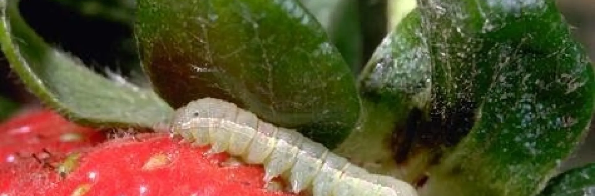 These worms were identified by our new UCCE entomologist Alejandro del Pozo as being a species of armyworm, for which this sort of behavior is not unusual. One distinct characteristic to ID these worms is the ‘Y' shaped suture on their forehead. For instance, the beet armyworm,Spodoptera exigua, could be a problem in strawberries when high infestations are left unmanaged. You could read more about the beet armyworm as pest of strawberries on the UCIPM guidelines at http://ipm.ucanr.edu/PMG/r734300611.html