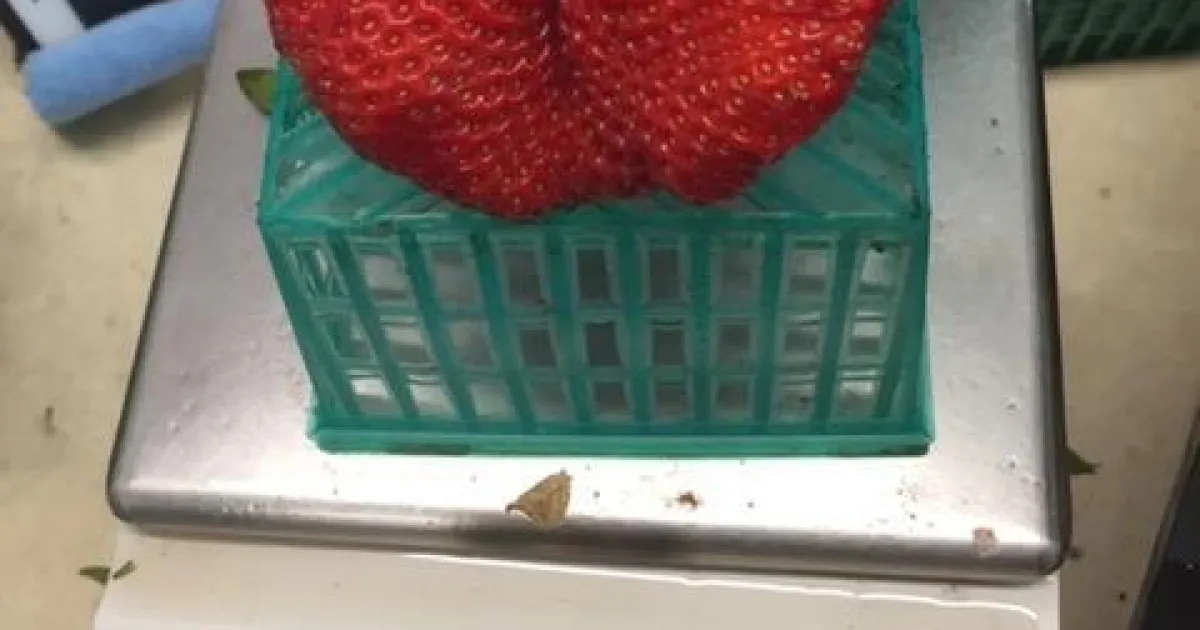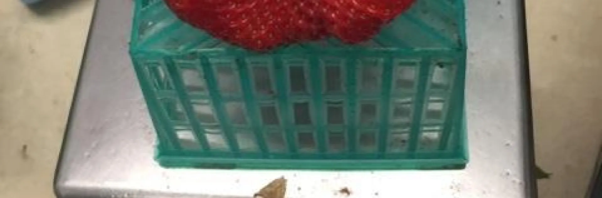 Strawberry season has started to kick into high gear on the Central Coast (at least until this spell of rain), and inevitably comparisons arise of fruit sizes. The posting of a 154 gram fruit by the CalPoly Strawberry Center on their Facebook page prompted a local breeder, CBC, to forward me the picture posted below of a substantially larger fruit from their program weighing 194 grams.