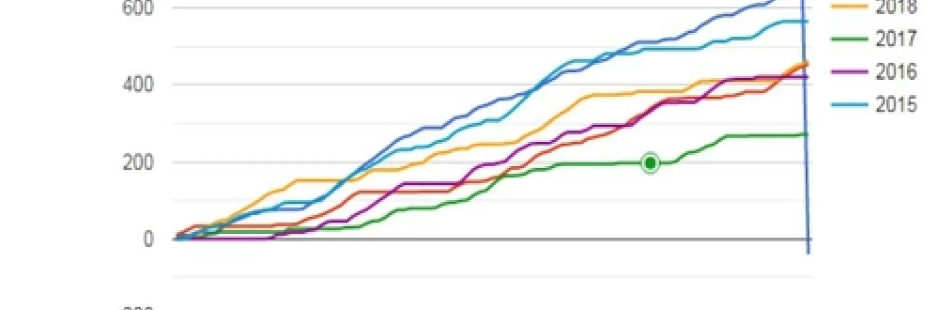 I include a copy of the chart comparing all of these chill accumulations below, note that years are labeled by the year the accumulation starts, ie 2019 marks Nov 1, 2019 through Feb 8,2020.