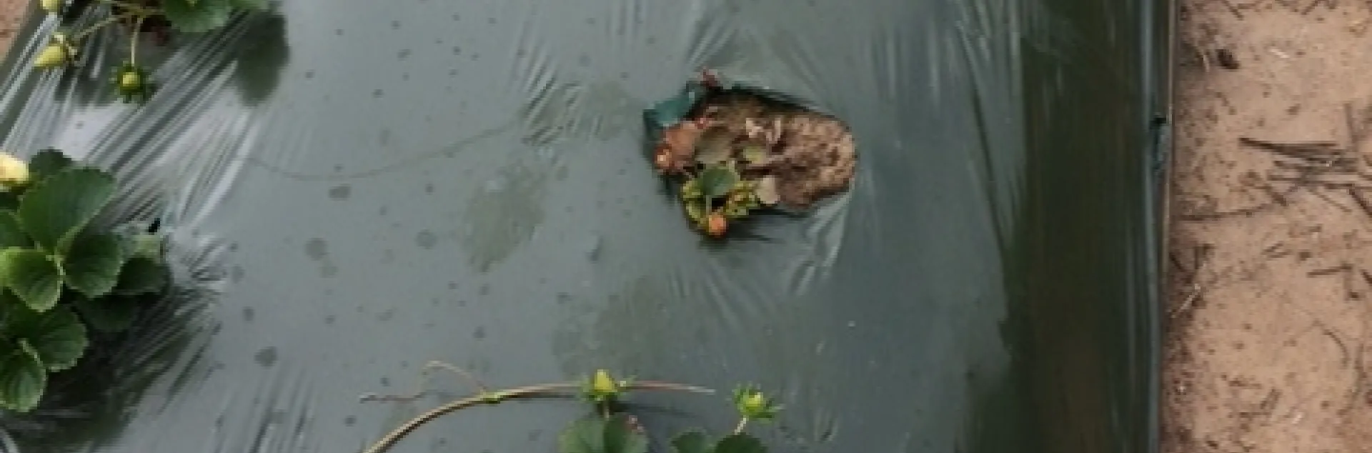 To concentrate people's minds on what Fusarium tolerance in strawberry can and can't do, consider the first photo below which is part of a crop termination trial I set up with a grower collaborator last fall and now coming into production this year. The areas receiving no fumigation treatment remain heavily infested with Fusarium, and lo and behold, the ostensibly resistant strawberry variety, 'San Andreas', is already going down.