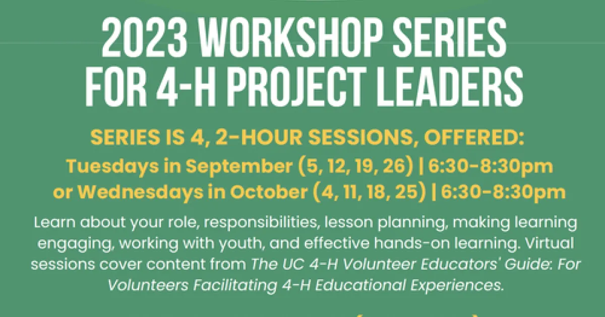 2023 Workshop Series for 4-H Project Leader Volunteers