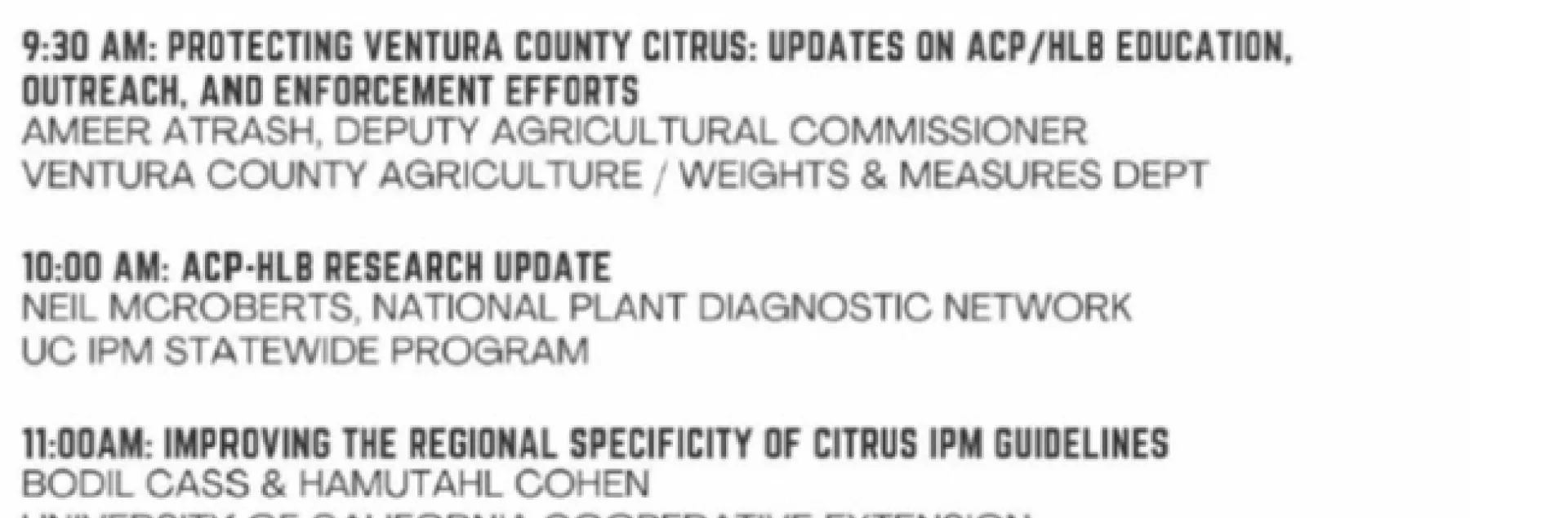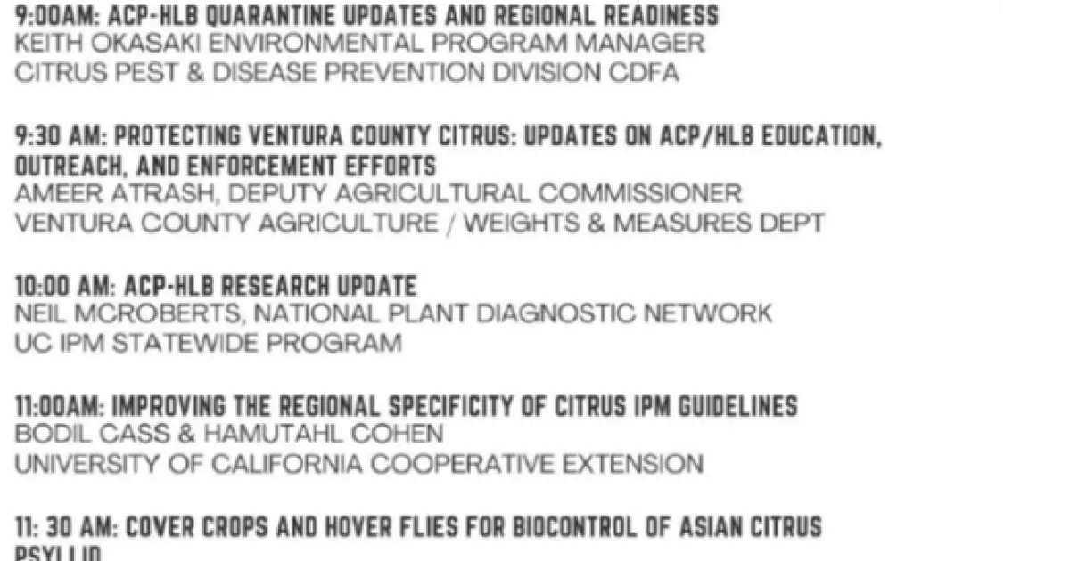 2024 Ventura County ACP-HLB Grower Meeting June 11 - In person or via Zoom