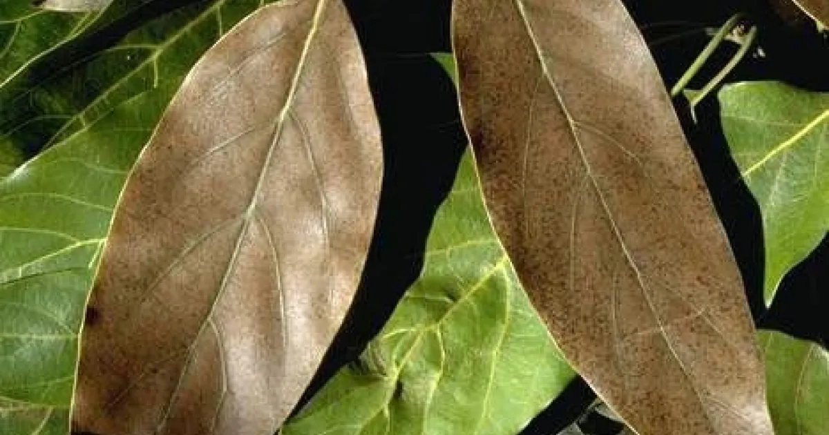 Avocado brown mite is a sporadic pest, mostly in coastal growing areas. Bronzing of leaves, mite cast skins, and partial defoliation of some trees by avocado brown mite is most noticeable from about July to September. Severe infestations tend to occur in border row trees along dirt roads, where road dust is detrimental to mite predators. Ash deposited on leaves from wildfires reportedly also causes brown mite outbreaks.