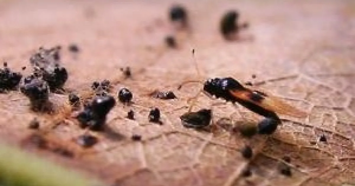 Lace bugs restrict their feeding to the undersides of leaves, inserting their needle-like mouthparts into leaf tissue cells to extract cell contents. Feeding initially causes small white or yellow spots on the surface of the leaves as individual cells dry out. It is suspected that feeding damage can provide entrance for pathogenic fungi, in particular Colletotrichum spp., which are leaf anthracnose fungi. As lace bug colonies grow, brown necrotic (dead) areas develop where there has been heavy feeding damage. These necrotic areas look like tip-burn caused by salt damage, but in this case, the necrotic areas are islands of dead tissue in the interior of the leaf surrounded by living tissue. Heavy feeding can cause striking leaf discoloration and early leaf drop.Other signs of lace bugs are dark, varnish-like excrement and shed white nymphal skins on the undersides of leaves. Avocado lace bug nymphs and adults do not feed on fruit
