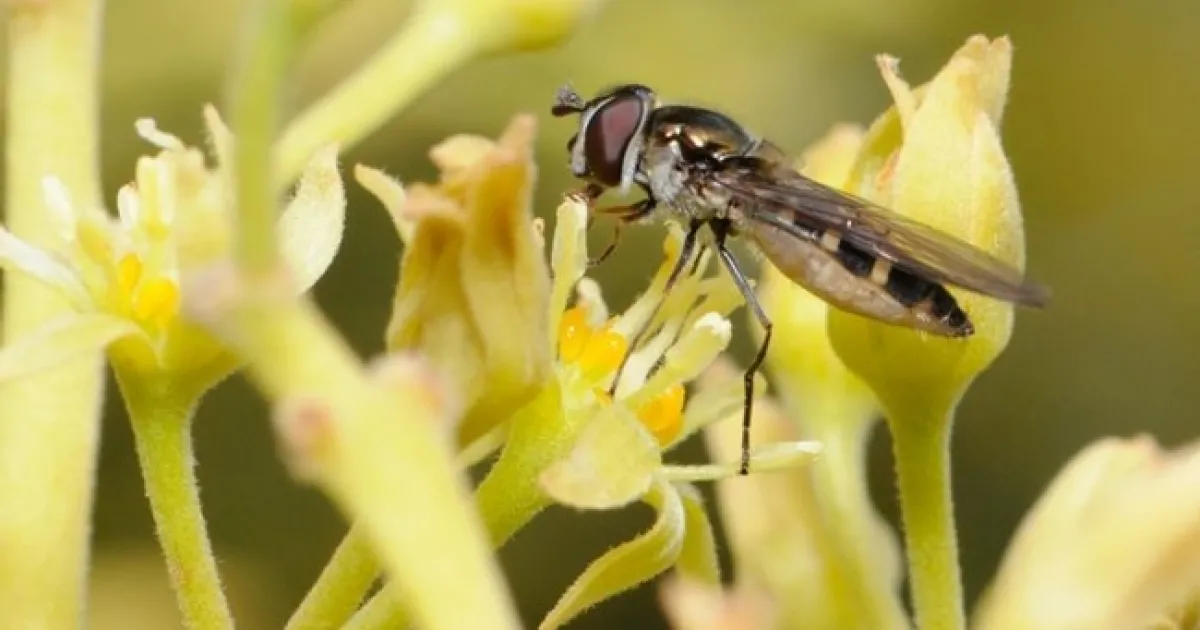 Hover fly visiting an avocado flower in the South-West of Western Australia (©2021 DPIRD)