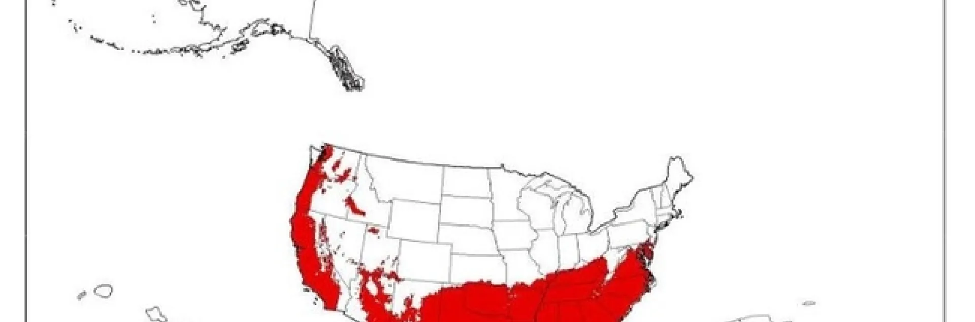 Calfflora shows cruel vine spread mostly along the coast south of San Luis Obispo, but it has the potential to spread thoguhout much of California. Currently, in the US, it is only found in California and Georgia. It is in New Zealand and Australia.