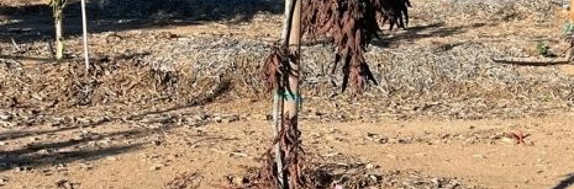 Red imported fire ant (RIFA), Solenopsis invicta, has been reported as a pest in Florida where the fire ants girdle young citrus trees (Diepenbrock) https://crec.ifas.ufl.edu/media/crecifasufledu/extension/extension-publications/2021/2021_jan_fireant.pdf Florida researchers found that RIFA girdled the trees and killed them. In the summer of 2022, we discovered newly planted avocado trees being girdled and killed in WHERE?. Upon closer examination we discovered the girdling was from the activities of a fire ant. Dr. Dong-Hwan Choe, Professor of Extension – Entomologist at UC Riverside, identified it as Solenopsis sp. Figure 1 show the initial damage to an otherwise healthy avocado tree which weeks later was completely girdled and dead. Fire ants were controlled using a bait. This took 2 applications. Fire ant mound is evident in Figure 1B but is not the typical mound that is associated with fire ants so growers need to be watching for ant activity and treat proactively. The fire ants were very aggressive to both the tree and the people working the trees.