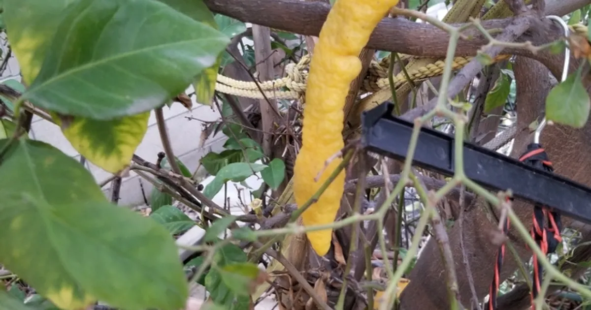 The grower resent the image, but this time it was about the long yellow thing in the background that was being asked about. The tree is planted next to a chile pepper plant and the question was whether the shape was affected by the chile proximity.