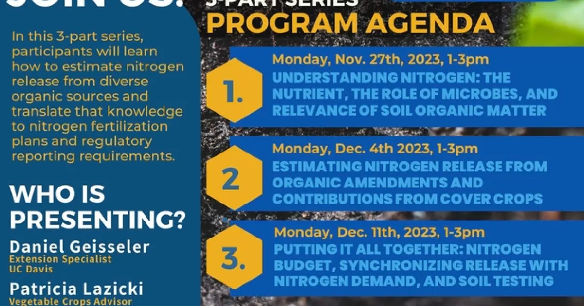 Growers, CCAs, PCAs and other agricultural professionals who are interested in learning about nitrogen management in organic production are encouraged to enroll.