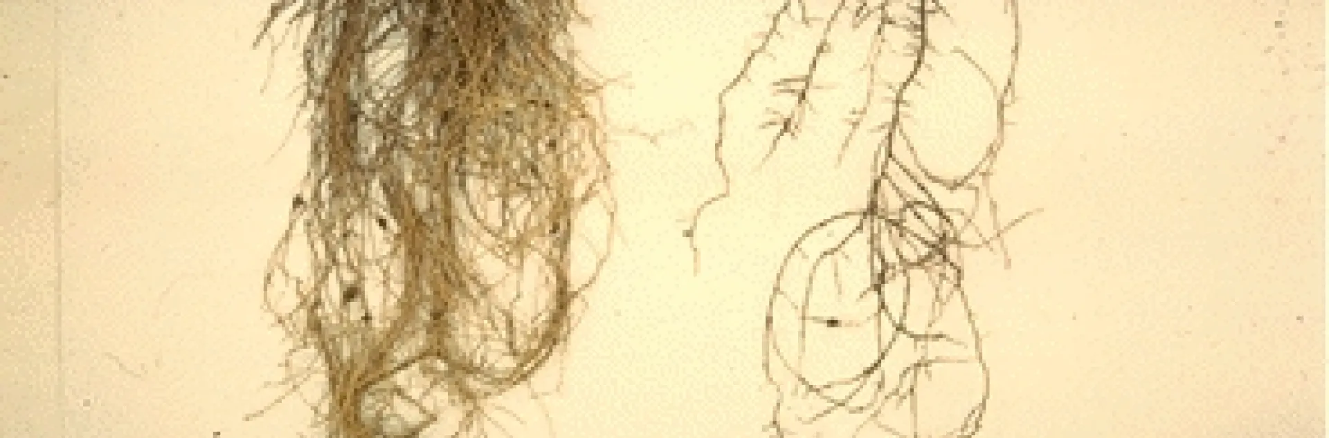 Citrus nematodes, Tylenchulus semipenetrans, parasitizing a citrus root. The second-stage larvae initially feed on root hairs. The larvae then penetrate into the feeder roots, molt three times, and establish a permanent feeding site (nurse cells) inside the root cortex. The swollen rear end of the mature female remains outside the root