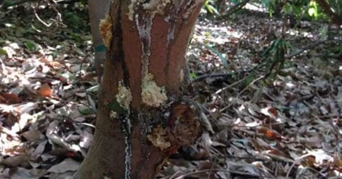 A sugar volcano is one symptom that shows your avocado tree might be infected with Fusarium dieback, a fungi spread by a beetle called the shothole borer. But what you might see if your tree is being attacked by shothole borer, varies among the different kinds of tree hosts. The symptoms—staining, sugary exudate, gumming and beetle frass—are often noticed before the tiny beetles (1.5–2.5 mm) are found.