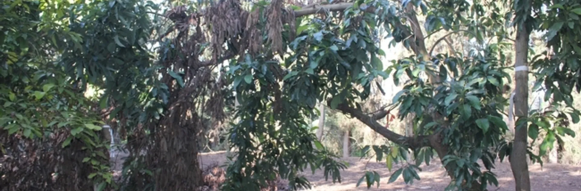 Figure 6. ‘Hass’ avocado tree in the northern Negev affected with Botryosphaeria. Note the dieback and the fact that previously infested wood has been removed. (Picture taken 3/9/2013 by M. L. Arpaia)