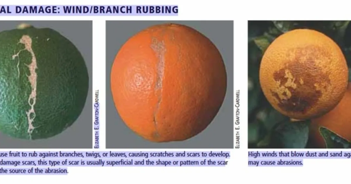 Well there are often simple explanations. And often there are complex ones. But one way to start looking at a piece of fruit damage is to consult this wonder color brochure put out by UC - https://anrcatalog.ucanr.edu/pdf/8090.pdf