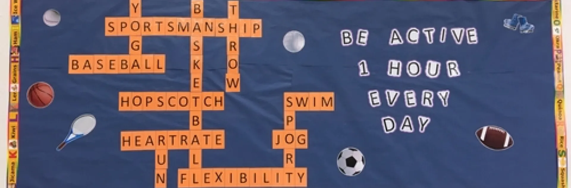Ayer Elementary's cafeteria received a Nutrition Corner update - the Physical Activity Crossword! It shows students different terms related to physical fitness and reminds them to be active for at least one hour every day. Engaging in physical activity has many benefits, including lowering our risk for heart disease, stroke, type 2 diabetes, depression and some cancers. It can even benefit children academically! Be sure to encourage your students and family be active regularly!