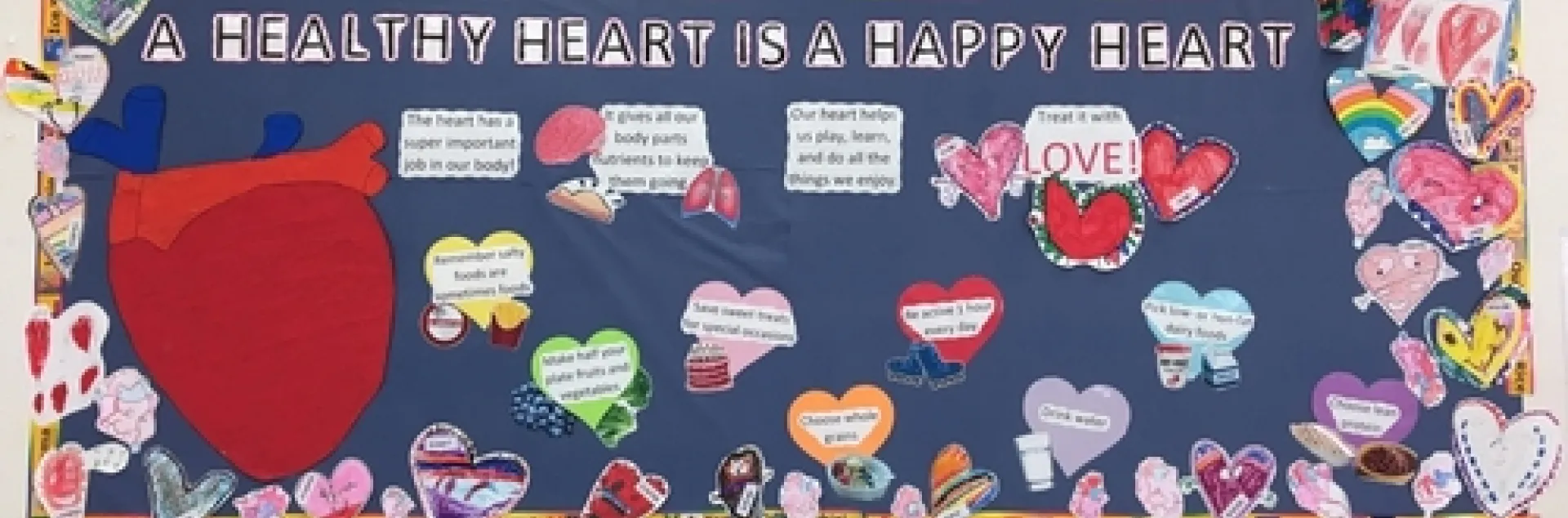 Ayer's student council, led by 6th-grade teacher Mr. Villanueva, headed the SLM project. The council's main priority was coming up with creative names for lunch menu items. Some of their ideas included fiesta salad, fresh tropical tangy fruit, and big and bold broccoli. To give more students an opportunity to participate in SLM implementation, UC CalFresh held an SLM booth at the spring carnival, where students could create Fruit and Veggie-of-the-Day cards, sign thank you cards for School Lunch Hero Day, and draw artwork for the cafeteria. Different grade levels were also given the opportunity to contribute original artwork to the lunchroom cafeteria.