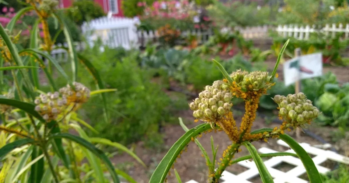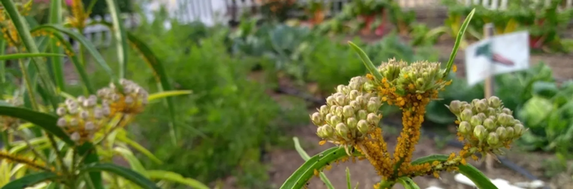 During a recent stroll through the Master Gardener Demonstration garden at the Hansen Agricultural Research and Extension Center, a narrow-leaf milkweed plant with stems and leaves covered in yellow caught my eye. A closer look revealed teeming masses of yellow aphids along the stems, as if festively dressing up the plant. But aphids are never a festive sign to the gardener as their voracious feeding stunts plant growth. In addition, their sugary excretions may attract ants and promote unsightly fungal growth called sooty mold.