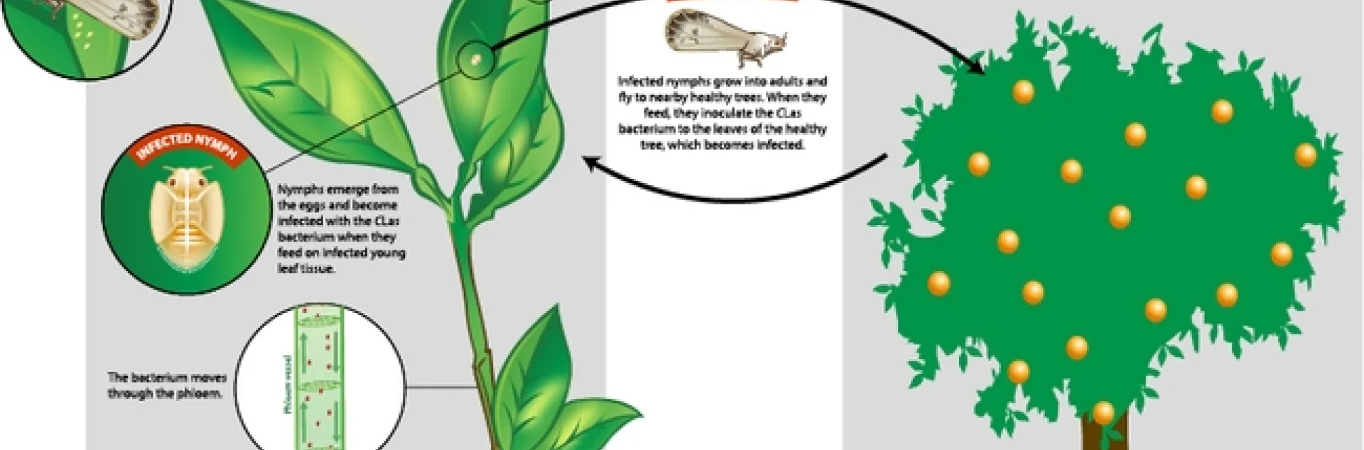 Huanglongbing, HLB, a bacterial disease of citrus also called Greening Disease, is spread by the Asian Citrus Psyllid. It causes the citrus fruits to be deformed and taste salty and bitter. HLB was first reported over a century ago in southern China. But why is it a problem for U.S. citrus? Diseases don't “respect” country borders and in 1998 the psyllid and the disease arrived in Florida in the early 2000's. Because there is no cure, damage caused in the largest orange producing state was extensive. By 2019, citrus production decreased in Florida by 74%. Despite federal bans on interstate movement of host plants, the psyllid did not abide by those rules!