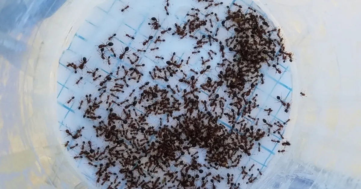 Red imported fire ant (RIFA, Solenopsis invicta, Fig. 1) is a venomous ant that was accidentally brought into California in 1989. Since its introduction, it has spread to many new territories in Southern California and Central Valley. RIFA infests lawns on parks, cemeteries, schools, houses, farms, etc. RIFA bites and stings people and its venom may cause anaphylactic shock in susceptible individuals. RIFA is currently found in many areas in Orange, Riverside, and San Bernardino counties. It is also becoming increasingly more problematic in the Merced County. In the Los Angeles County, it occurs near the borderline of Orange and San Bernardino counties. In 2017, the California School for the Deaf in Riverside experienced a severe RIFA infestation and school's ground crew had little success in trying to control RIFA on their 70-acres of land.