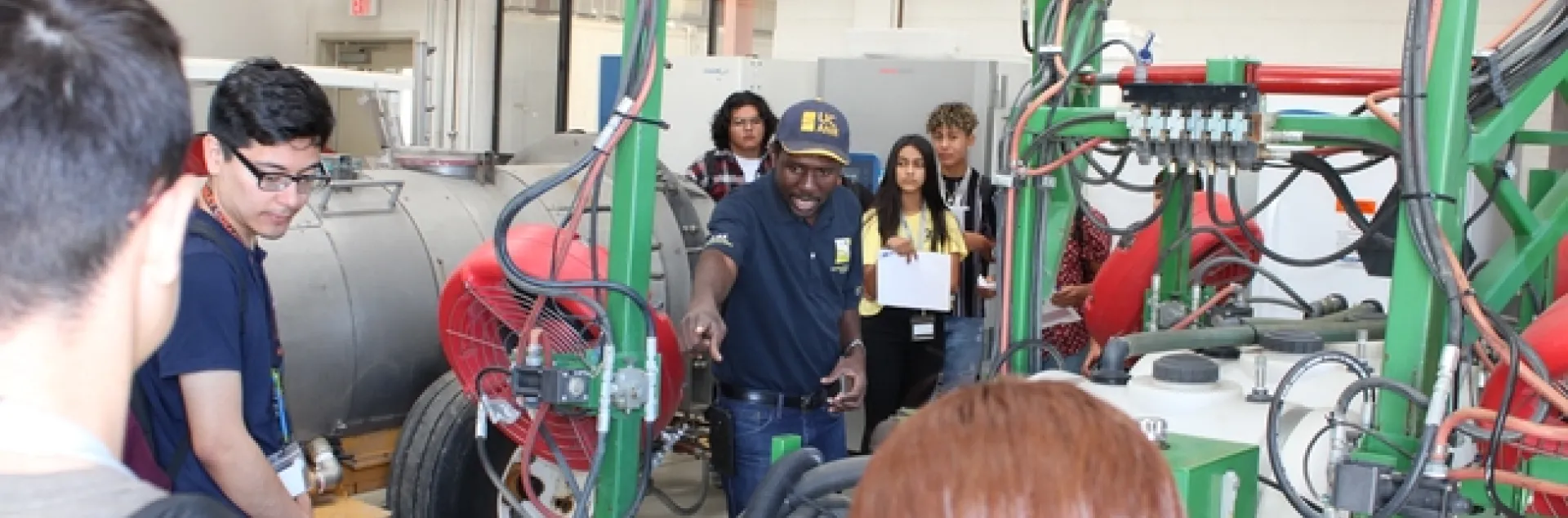 Participating this year for the first time, UC Cooperative Extension Specialist Peter Ako Larbi delivered a workshop to 85 high school students in four sessions at his Agricultural Application Engineering (AgAppE) Lab located at the KARE Center. The learning objectives were for the students to become familiar with the concept of spray application and to acquire some practical basic sprayer calibration skills. The topics covered included: introduction to spray application, which covered definitions of spray, properties of spray, and demonstration of atomization; nozzles; sprayers; and hands-on exercise in backpack sprayer calibration. In each session, students volunteered to assist with demonstrations.