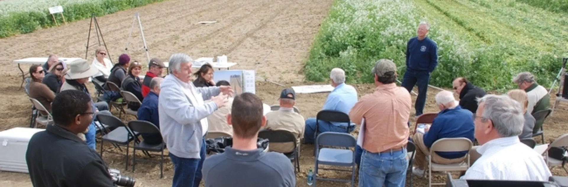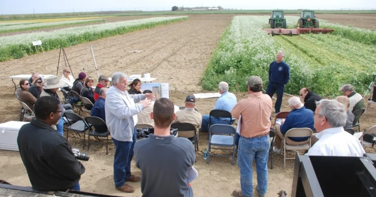 In 1999, UC ANR established the long-term University of California Conservation Agriculture Systems Project at the West Side Research and Extension Center in Five Points, CA with a group of San Joaquin Valley farmers, the U.S. Department of Agriculture National Resources Conservation Service (USDA NRCS), private sector, and university partners to measure changes in soil and crop productivity with implementation of the key soil health management practices of cover cropping and no-tillage. The original intent was to investigate farming practices that would reduce particulate matter emissions and increase soil carbon relative to the historically high soil disturbance practices that had been used in the region for over 80 years. At that time, no till practices were used on less than 2% of annual crop acreage in the San Joaquin Valley and informal estimates indicated that the extent of cover cropping and high surface was at similar low levels of adoption. Based on this project and the multitude of public educational events that it has conducted for over 3,000 people since its inception, UC ANR organized a group of about 20 California farmers and private sector supporters who are now working together on a USDA NRCS Conservation Innovation Grant Program project aimed at increasing the adoption of reduced disturbance cropping systems at organic vegetable production farms.