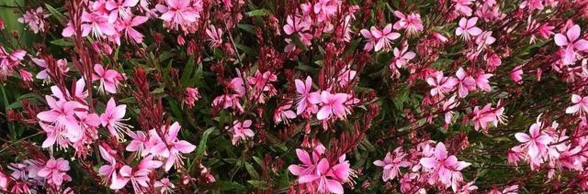 Narrative: Gaura, also known as Beeblossom, is a stunningly beautiful plant with long, wispy stems and 4-leafed white or pink flowers. Gaura has a deep taproot and foliage ranging in color from dark green to burgundy. There are several different species of this plant which can be annual, biannual or perennial and it reproduces via seeds or by rhizomes. One of the most common species is Gaura ‘Siskiyou Pink' (Gaura lindheimeri). Native to southeastern Texas, Louisiana and Mexico, Gaura is a hardy plant in zones 5-9 and does very well on the Central Coast.