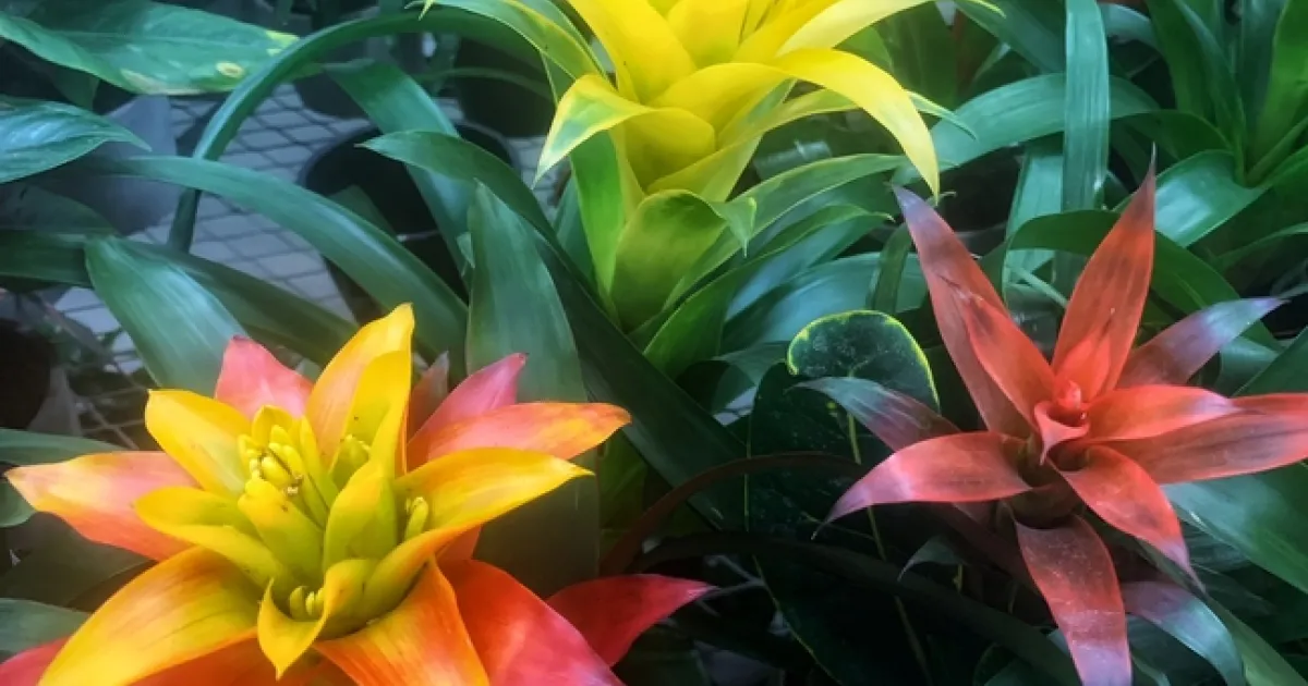 To flourish, Bromeliads need a well-draining potting soil with some sand. Orchid mixes work well. Water by moistening the soil or by filling the center depression or the “cup” formed by the rosette of leaves. Keep the soil moist, but not soggy as these plants are susceptible to root rot. If watering the cup, be sure to flush the cup to prevent salt build up. Different species require different amounts of light. Some plants can take a full tropical sun while others are less tolerant and need indirect light. If the main leaves are yellowing, it's getting too much light. If they are darkening, it's getting too little light. Temperatures should be between 60-85 degrees Fahrenheit with some humidity, keeping in mind, these are tropical plants.
