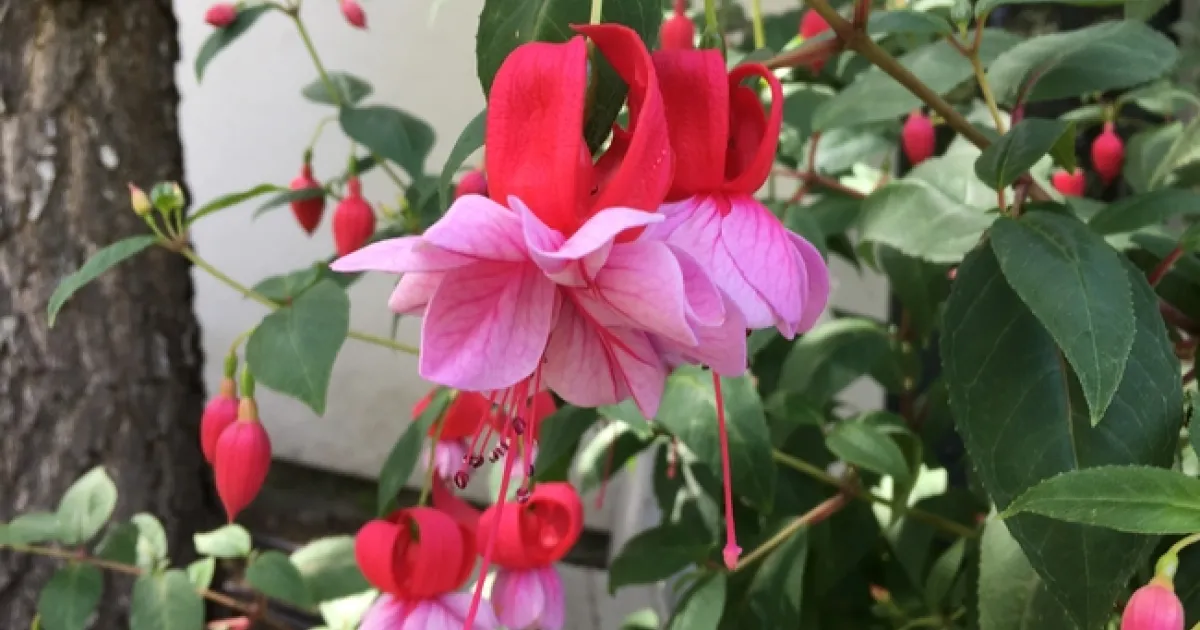 Fuchsias are considered heavy feeders and do best with a monthly application of balanced liquid fertilizer. Flowers appear on new wood and should be pruned before spring growth appears. Pinch or cut out the growing tips of new growth to encourage the development of lateral branches. Remove seedpods during the growing season so the plants continue to produce new blooms. Fuchsias are susceptible to fuchsia gall mites, a microscopic wormlike mite that was accidentally introduced from South America in the 1980s. The pests cause leaves and shoots to become thickened and distorted, and the formation of unsightly galls. This problem is prevalent in coastal San Luis Obispo where summers are cool. Whiteflies and spider mites are other common pests. Minimize infestations by planting resistant varieties of fuchsias and checking nursery stock carefully for the presence of pests. Monitor plants carefully for any signs of disease. Pinch back or remove and destroy affected foliage. Do not compost as it encourages the spread of pathogens. Consider replacing severely impacted plants. Fuchsias are readily propagated by using cuttings or seeds.