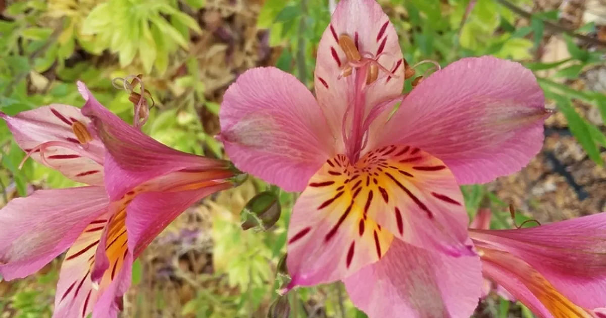 Of note: when planted in the ground, Alstroemeria will self-seed, expand and potentially crowd the roots of nearby plants over time. Also, snails and slugs are attracted to Alstroemeria so monitor to prevent damage from these visitors.