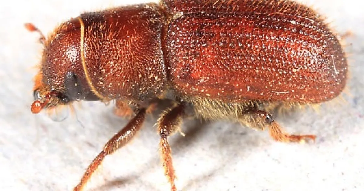 Most of us have seen the results of an infestation from this beetle - dead Monterey pine trees. But it is probably safer to say that most of us have not seen the culprit, the Red Turpentine Beetle. Like most bark beetles, it is small compared to other beetles, but is actually big for a bark beetle. The adult female beetle looks for Monterey pine trees that are under stress. Apparently stressed Monterey pines give off a certain chemical odor that the beetle can pick up on her antennae. As most of us know, we have had a lot of stressed Monterey pines in our area recently, due to a prolonged drought. Monterey pines that had a source of water during this drought were able to avoid being killed by the beetle - those that didn't, were not long for this world. After being attracted to a potential host tree, the adult beetle will bore into the bark. If she comes across a sap tube that is functioning properly, she is overwhelmed by sap and either pushed out of the hole or killed by being engulfed by sap. If this does not happen, she goes on to build an egg chamber. This is the beginning of an infestation in that tree and will most likely lead to its death. Somewhere along this process of forming an egg chamber, she will release a pheromone, attracting other Red Turpentine Beetles to the same tree. This overwhelming attack is usually more than the tree can overcome, especially a stressed tree.