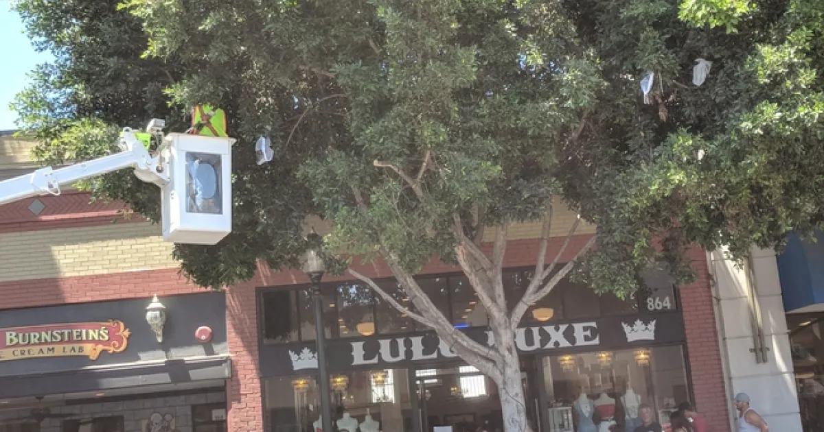 An invasive whitefly pest is attacking our giant fig trees in downtown SLO. I got a call to help out, so we started a proof of concept experiment to release microscopic stingless parasitoid wasps that lay eggs in whiteflies. Then, their young hatch out and eat them. If these wasps do the job, we can release lots more to get control. First step is to try them out in cages on the trees. I hope this raises some awareness. I like elevating people's knowledge about biological control. It's uplifting. Raising to the occasion. (Btw, can't lie, it's totally cool being in a bucket up in a tree.)