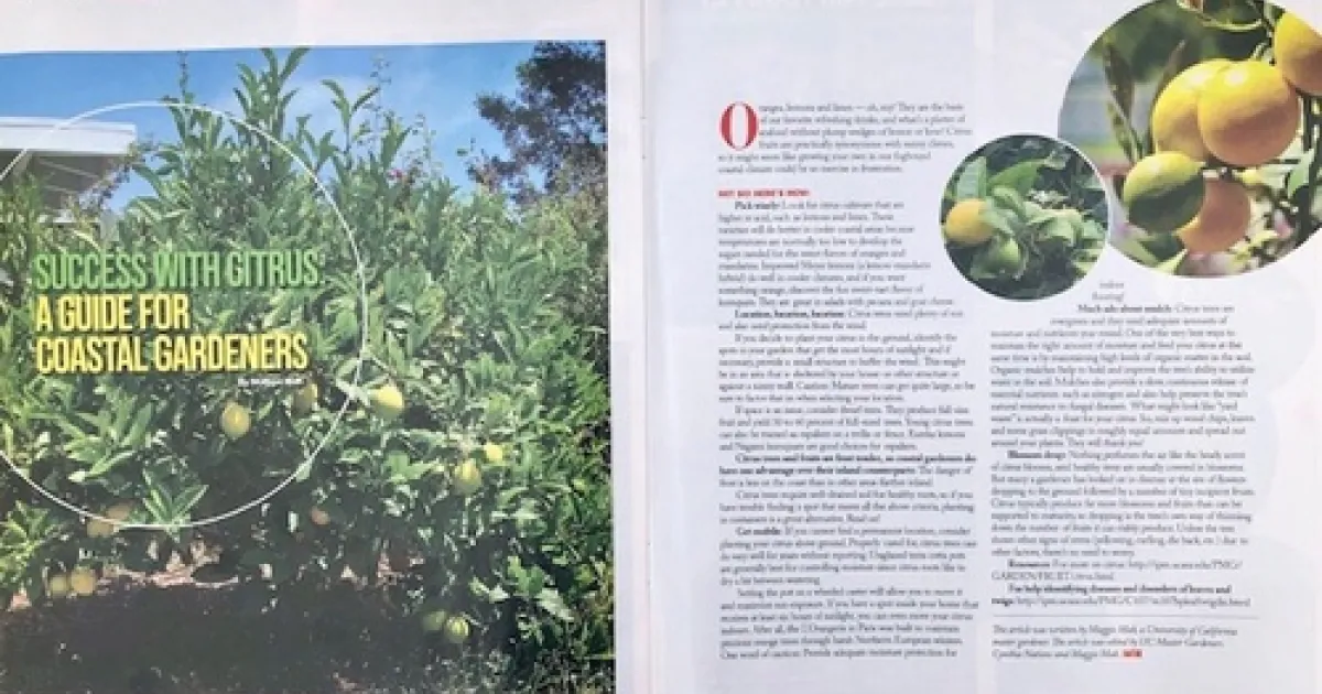 Oranges, lemons and limes—oh, my! They are the basis of our favorite refreshing drinks and what's a platter of seafood without plump wedges of lemon or lime? Citrus fruits are practically synonymous with sunny climes so it might seem like growing your own in our fogbound coastal climate could be an exercise in frustration. Not so! Here's how: