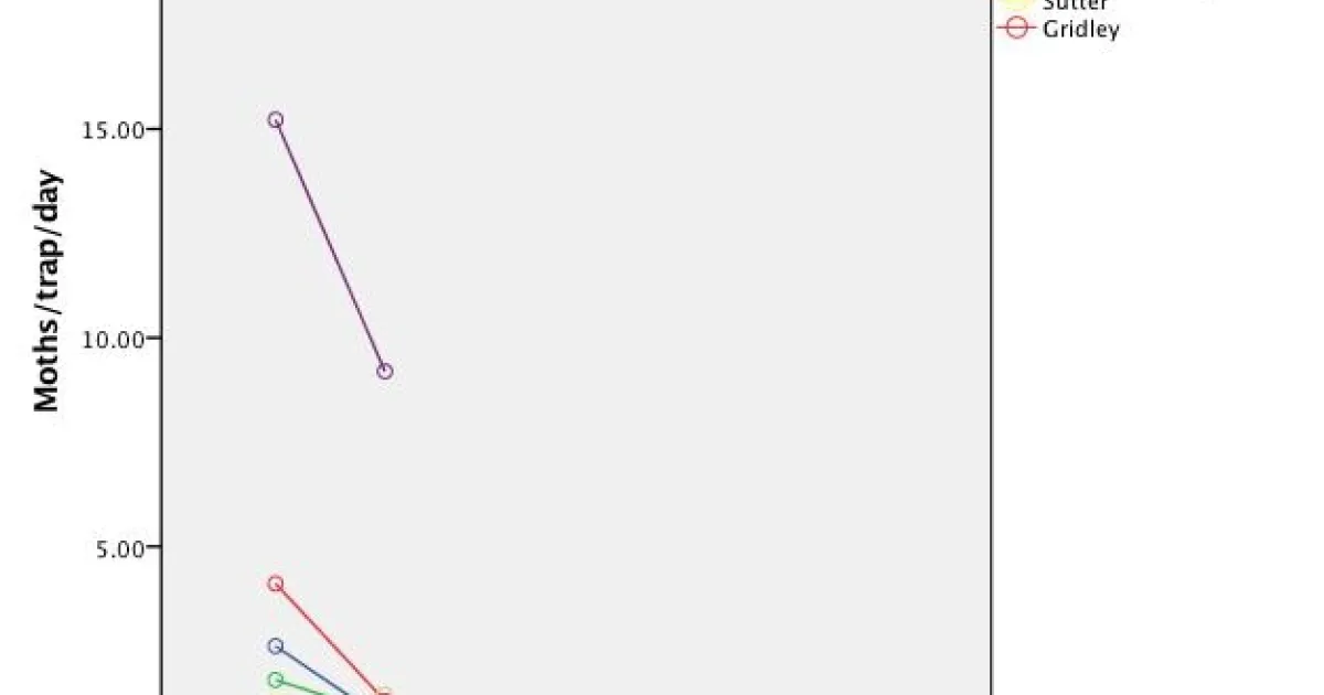 Number of moths/trap/day captured in armyworm pheromone traps across the Sacramento Valley