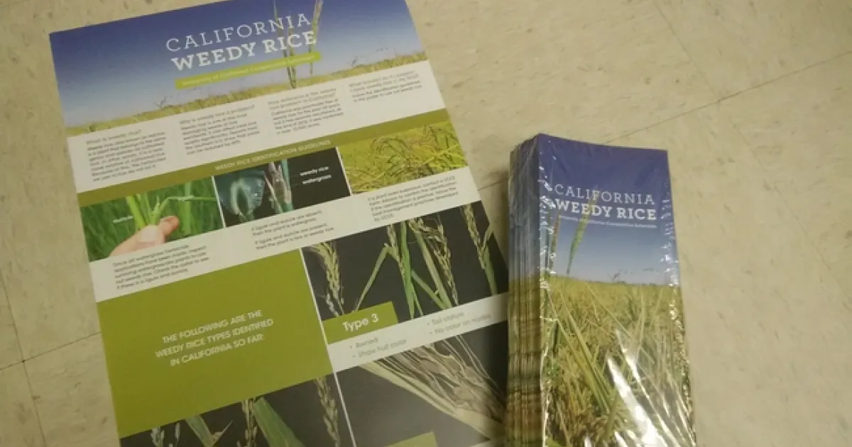 An identification pamphlet was mailed out by the California Rice Commission a couple of weeks ago to most growers and PCAs. If you need additional pamphlets, they are available at your local UCCE office. Identification posters will be distributed to Agriculture Commissioner's offices, PCA offices, and rice mills and distributors in each county in the next few weeks. They are also available at your local UCCE office upon request.