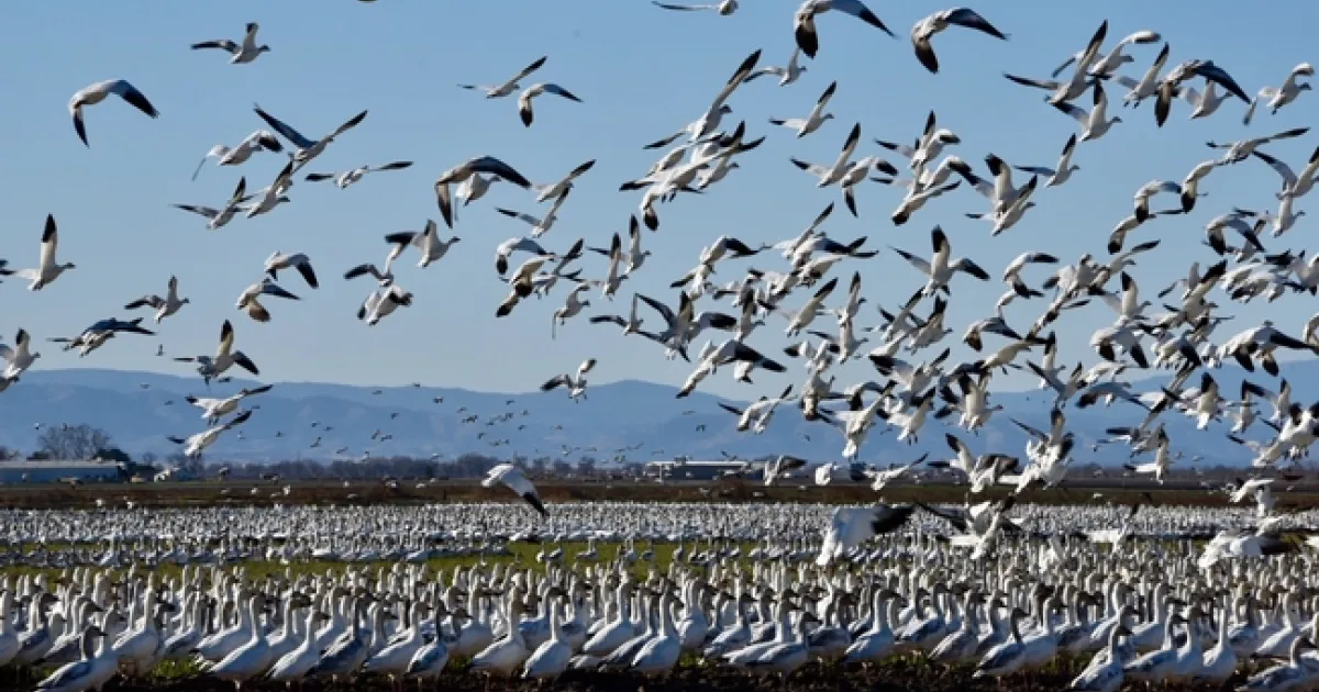 The sight of thousands of geese foraging in agricultural fields is spectacular and a natural wonder, until they start devastating your crop. This winter, snow and Ross's geese have been eating farmers out of house and home in the Sacramento valley, devastating wheat, cover crops, and alfalfa fields.