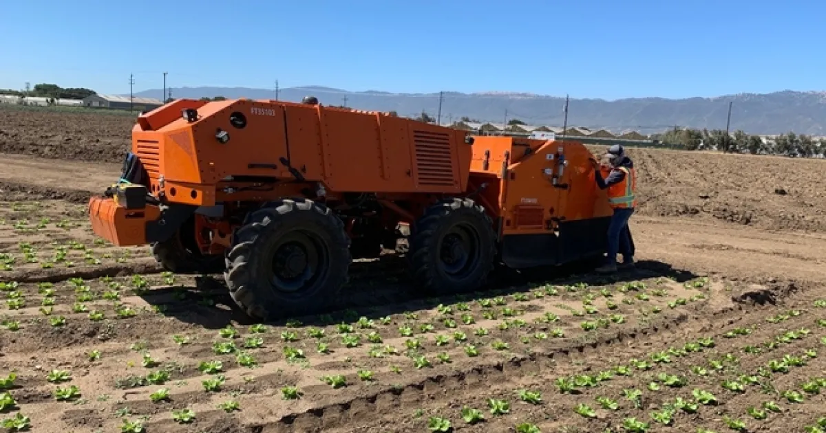 Photo 2. FarmWise Titan autonomous tractor equipped with split knives