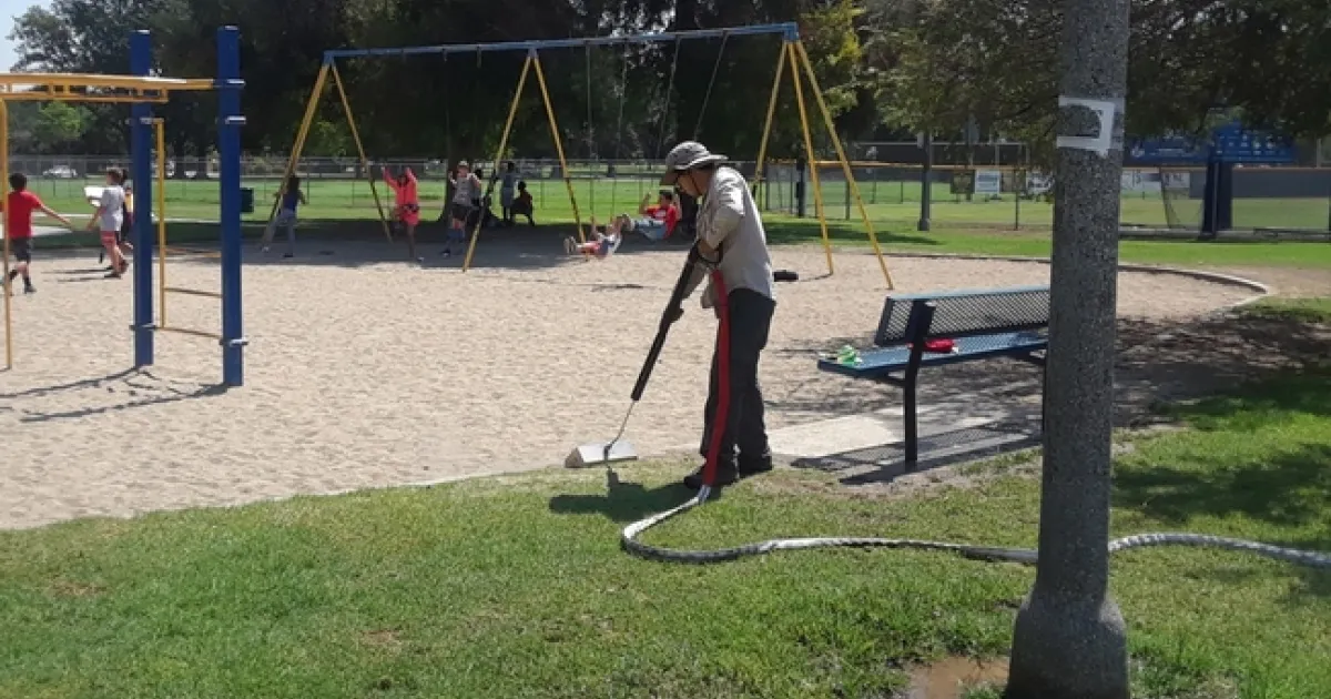 We started treatments at a city park in Long Beach California at the end of July. This park was a good test site because it had most of the areas of concern that would be treated with a non-selective herbicide. This would be tree wells, edging, and near a playground.