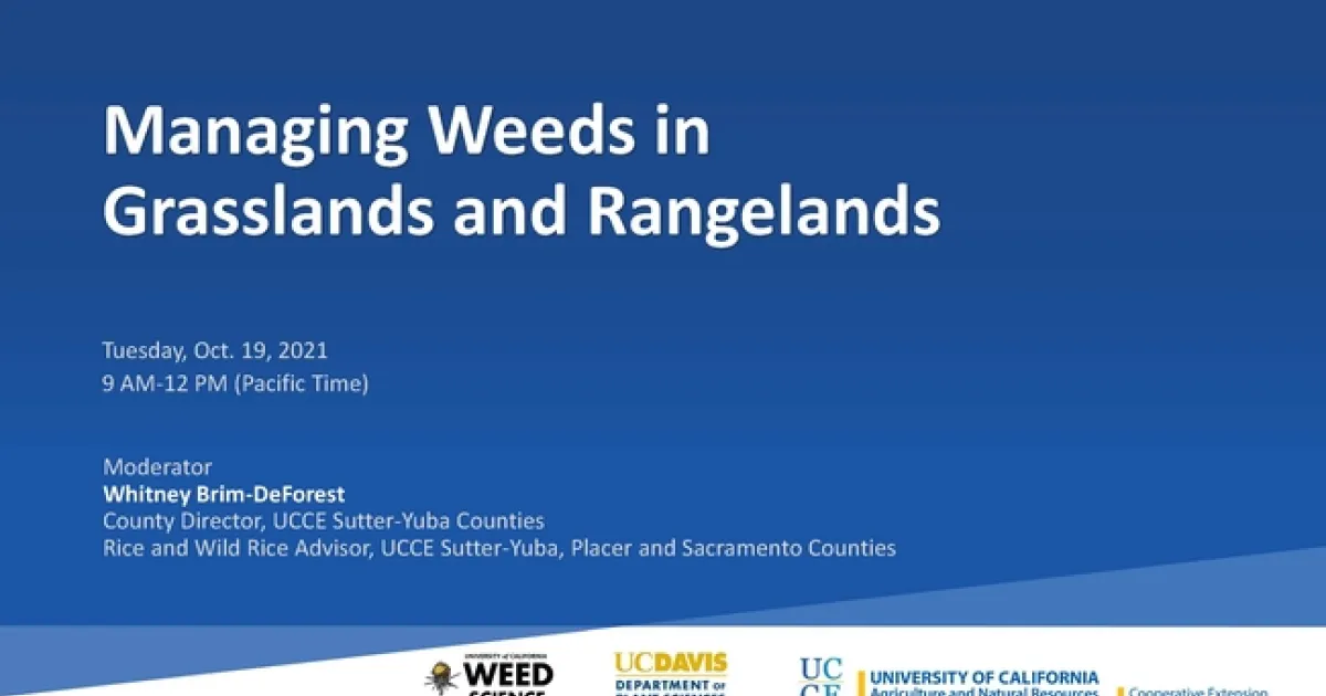 If you missed the Managing Weeds in Grasslands and Rangelands 2021 online event (Oct. 19, 2021 • 9 AM-12 noon PST), you're in luck. We have the recordings of each presentation here.