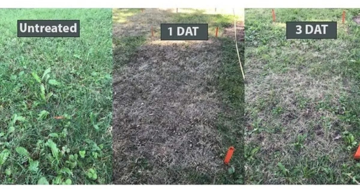 Some of the organic herbicides tested exhibited quick results, with immediate burndown of contacted weeds observed within an hour or two. the majority of plant damage was observed between 1 DAT and 7 DAT. However, most weeds also completely regrew from the base or roots 2 to 3 weeks after each application.