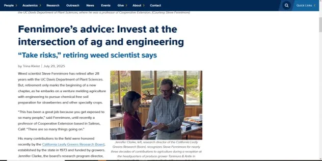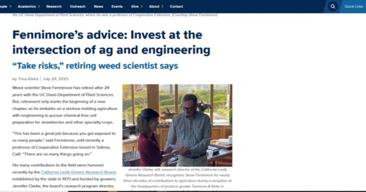 Here's a directly link to that article: https://www.plantsciences.ucdavis.edu/news/fennimore-retirement