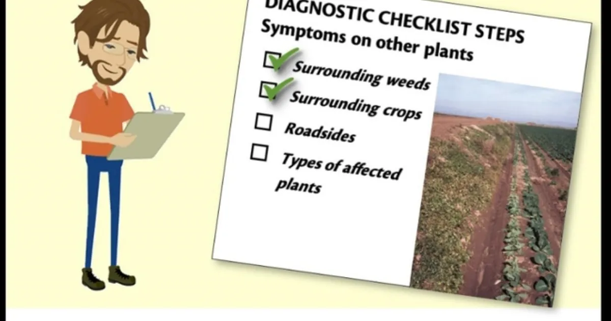 The gold-winning video "Diagnosing Herbicide Injury" includes several interactive features to make it more engaging and entertaining, and to help viewers remember the information.