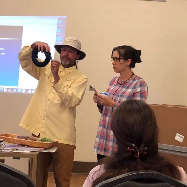 Jillian and Adam presenting together at UCCE San Bernardino County Master Gardener class, "Healthy Soils."