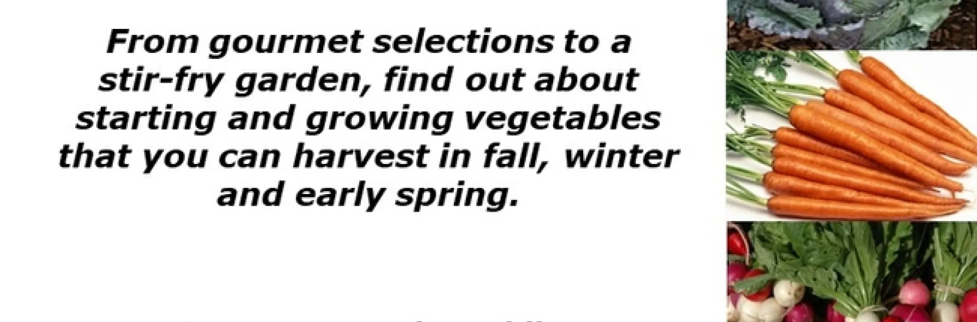 Cool season vegetables are cool! From gourmet selections to a stir-fry garden, find out about starting and growing vegetables that you can harvest in fall, winter and early spring.
