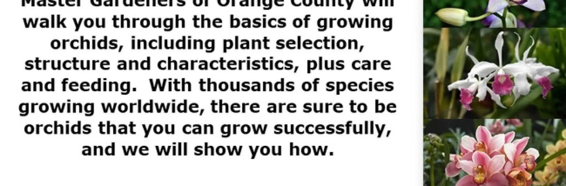 We will walk you through the basics of growing orchids, including plant selection, structure and characteristics, plus care and feeding. With thousands of species growing worldwide, there are sure to be orchids that you can grow successfully, and we will show you how.