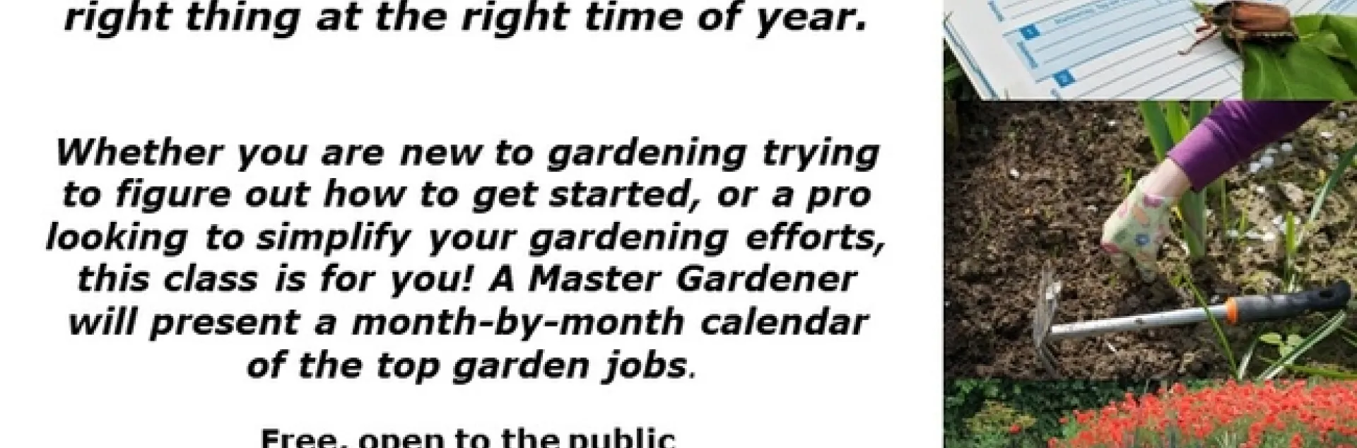 Creating and maintaining a beautiful garden is all about timing – doing the right thing at the right time of year. Whether you are new to gardening trying to figure out how to get started, or a pro looking to simplify your gardening efforts, this class is for you!