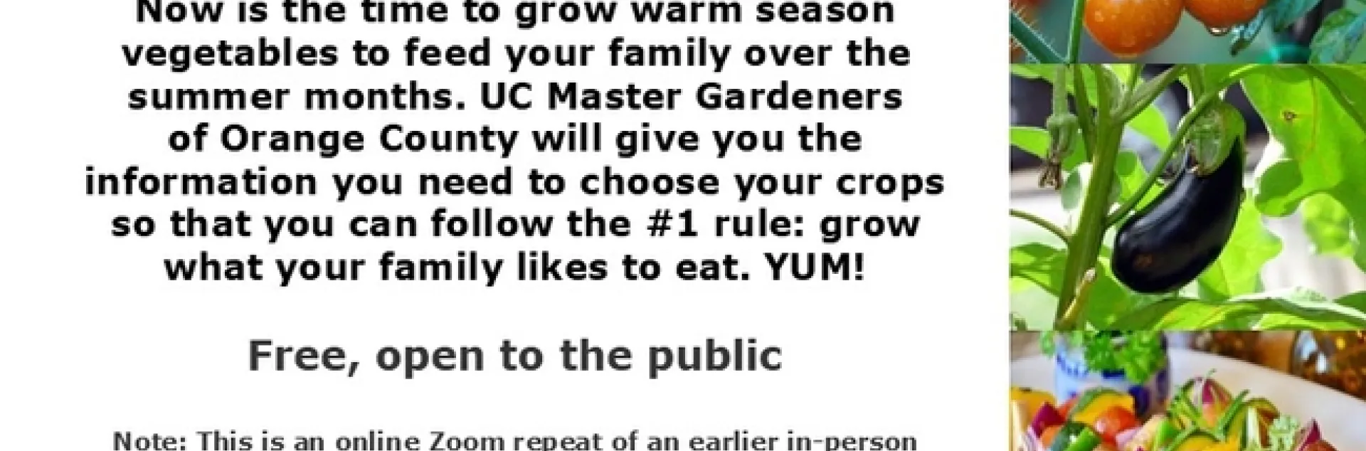 Ready to dig in the dirt again? Now is the time to grow warm season vegetables to feed your family over the summer months. We will give you the information you need to choose your crops so that you can follow the #1 rule: grow what your family likes to eat. YUM!